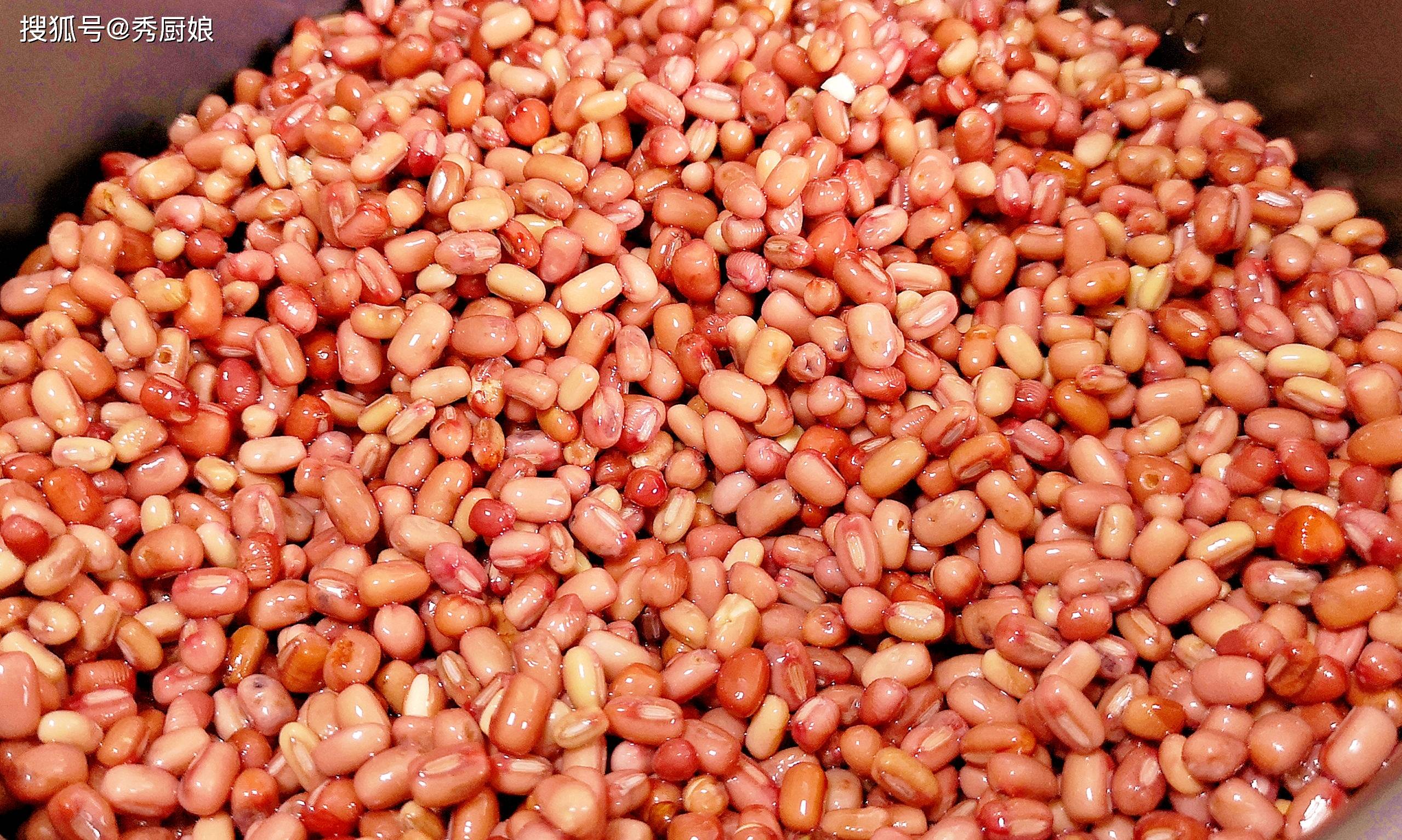 注意是赤小豆,不是红豆,比红豆细长些,颜色也更深。这东西硬,得提前泡,最好是隔夜泡上。
