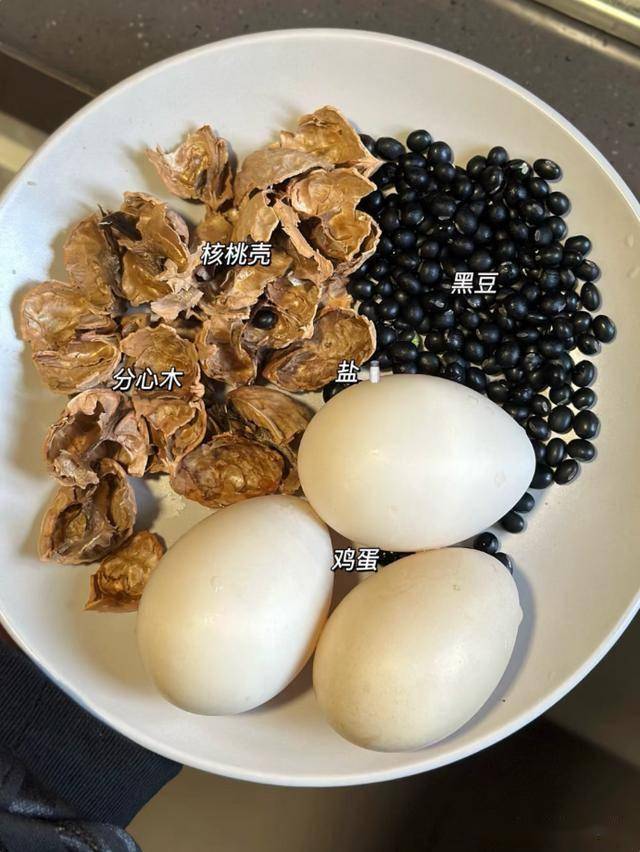 1. 黑豆提前浸泡4小时,鸡蛋煮熟去壳;