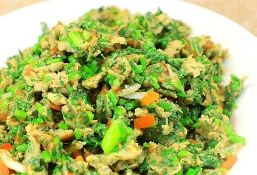 菠菜拌鸡蛋皮