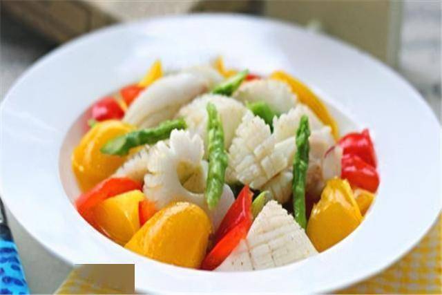 2、鲜鱿鱼需要把外皮撕下来,不然吃的时候口感是韧的,海蜇稍微切粗一点,一过水就缩了。
