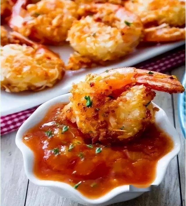 做法:1、准备3个碗,将面粉,盐和胡椒粉混合在一个碗中,鸡蛋打在另一个碗中,面包糠和椰丝放在第三碗中。