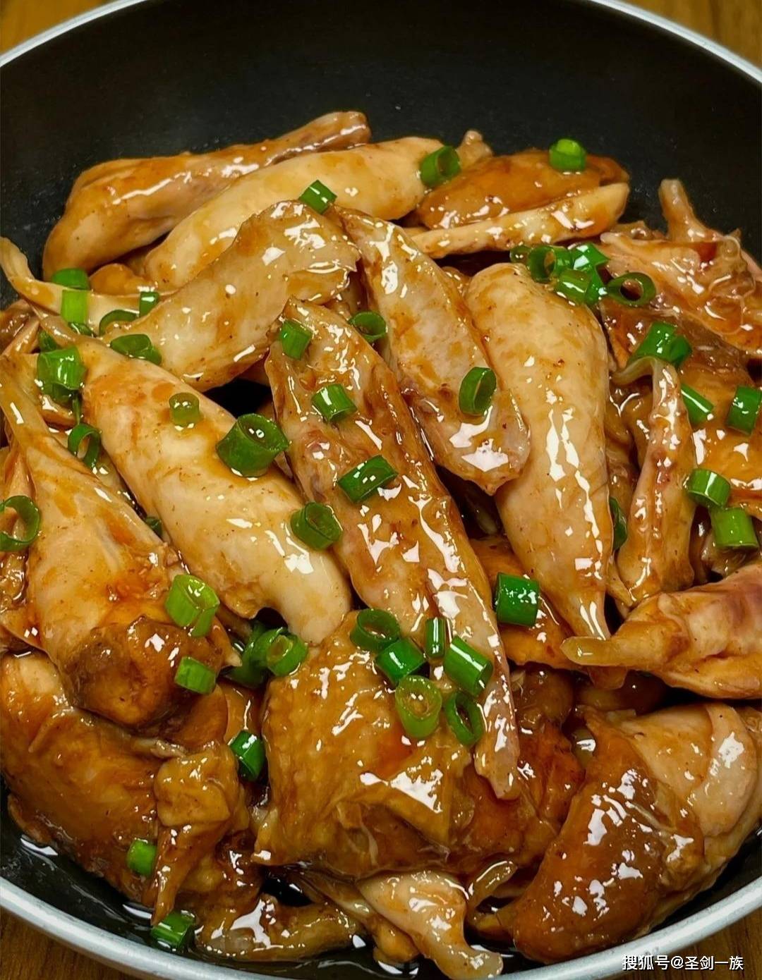 6. 最后开大火收汁,汤汁浓稠后撒上葱花,翻炒均匀即可出锅,鸡肉鲜嫩不柴,酱香浓郁,手撕着吃更入味。