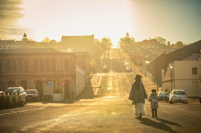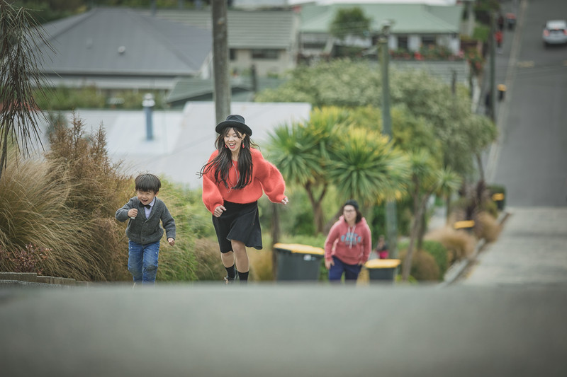 但我倒是认为,最美的风景不在斜坡本身,而在那两侧的人家吧。这里,一定都是热爱生活的人们,每家每户都种着花花草草,把房子漆成彩色,而坐在坡顶俯瞰远方,但尼丁的城市街景也尽收眼底了。