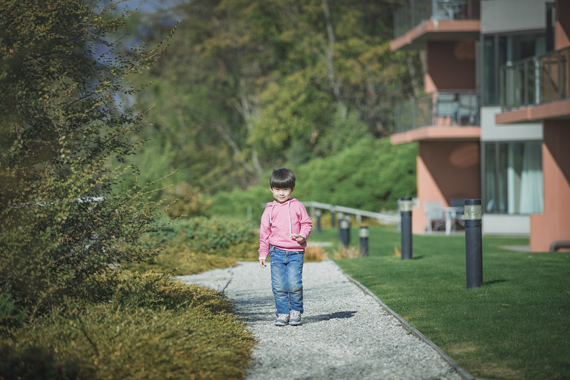 属于叮当的第一个皇后镇的清晨,大概自己也被眼前这美景折服了,这张照片,是主动要求为他拍的,镜头下的他,还略有些小羞涩呢~