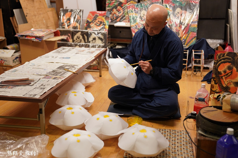 弘前睡魔祭 在睡魔灯笼馆,还能了解到青森的传统工艺:弘前木偶人、津轻小巾刺绣、津轻陶器、津轻风筝、津轻脱落仔古哩。我们可以在现场看到不同的传统工艺的现场手作过程。弘前木偶人看起来就像是年代久远的产物,据说是因为1850年那会开始,日本老人经常出去泡温泉,回来就希望带给自己的孙子孙女小礼物,于是温泉会馆就慢慢出现了木偶人,逐渐变成了东北地区独特的儿童玩具。