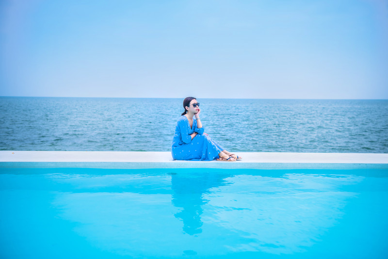 如果你没有计划来此用正餐,也可以选择下午来这里喝点饮品,然后游个泳。或许,错开中午用餐高峰,下午人会少一点呢?在准备离开之前,刚好泳池边的位置腾出来了,于是拍上一张打卡照,再离开吧!