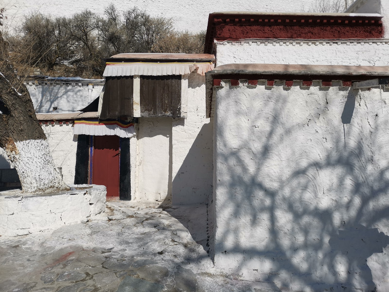 前一天的大雪纷飞,第二天便是阳光明媚,我们才得以落地抵达拉萨,攀登在布达拉宫的台阶上,阴影部的雪还厚厚的一层。布达拉宫是建立在红山上的,是五世达赖喇嘛重建的布达拉宫,先是以白宫(行政办公地)为主的建筑群,而后才又扩建的红宫(灵塔殿),当然,经过很长的历史,布达拉宫现在具备的功能超多,有包括宫殿、灵塔殿、大殿、佛殿、宿舍等。