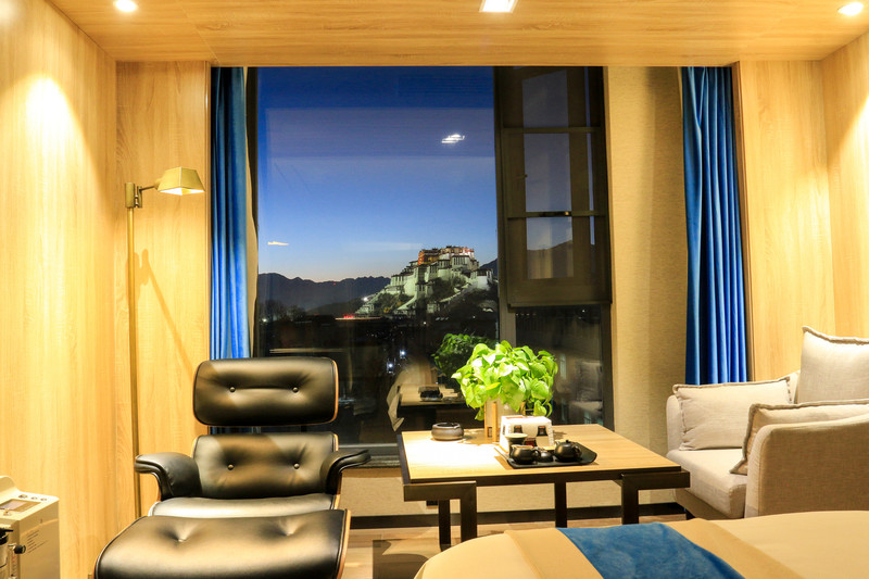 酒店的早餐是直接送到房间来的,前一晚会打电话跟您确认使用早餐的时间,在指定时间送到茶桌上,早晨醒来打开电动窗帘,布达拉宫映入眼帘,就着稀饭、馒头和牛奶、红茶,一个完美的早晨就这么开始了。