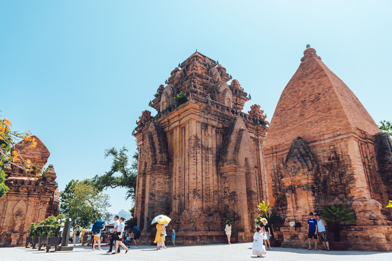 这一顿下来,差不多人均在32W越南盾,也就是100人民币左右,还是很便宜了。 婆那加占婆塔「Ponagar Tower」 婆那加占婆塔,相当于中国渔民的妈祖,属于印度教的建筑,跟柬埔寨吴哥窟得风格有些像,被有些人叫做小吴哥窟,但是它跟吴哥窟的规模相比那就是大巫见小巫,差远了。经历后战争的洗礼后,目前完整保留下来的就只有4座塔,但是还是很值得去看一下。 一般来这里的中国旅游团最多,拍照基本上到处都是人,不是很好拍,只能选择好的角度了。 门票:22000W越南盾/人,开放时间:上午6点到下午6点(芽庄5点钟就天亮了) 推荐指数:四颗星 拍照指数:五颗星