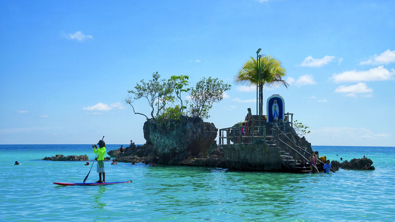 布拉波海滩 最有意思的是一座涨潮时会与陆地分离的“孤岛”,上面居然还有当地居民,付了100比索“门票”进去参观了一下,下面的海水异常清澈,尽头还有另一处礁石,倒是别有洞天。