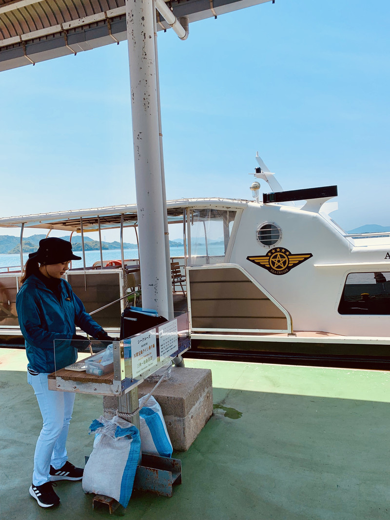 天草 把预定好的纸质票给小姐姐看一下,就可以上船啦~