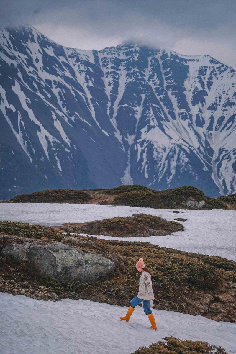 穿上了我压箱底的雨鞋,没想到真的派上用场~ 这里的雪漠过膝盖那么高,想找个好的角度踩进雪里拍照,一不小心就深陷雪坑里哈哈哈