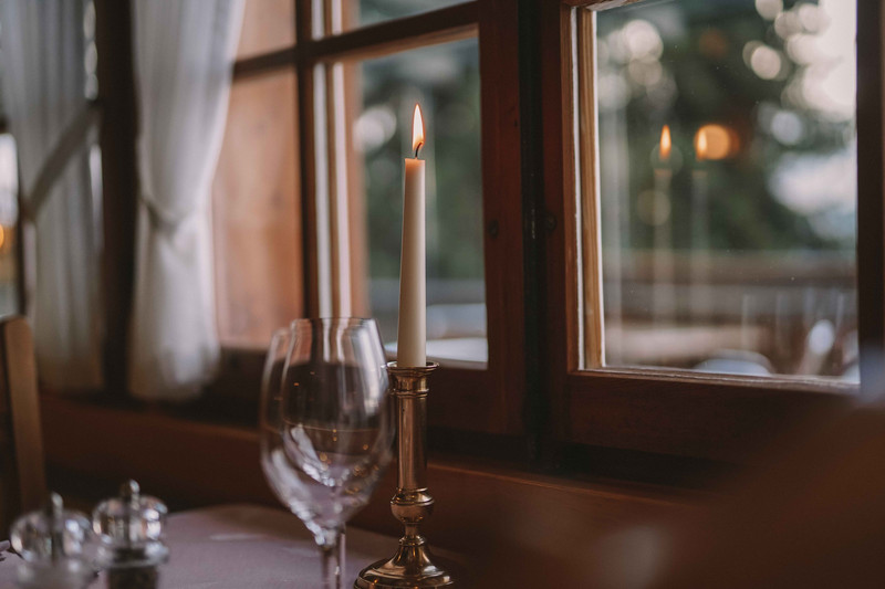 回到酒店时,天已经渐渐暗了下来~ 民宿的老板在窗前点起了蜡烛,我们在雪山的背景下,就着烛光和夕阳吃完了晚餐。