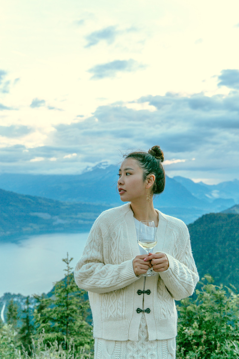 今天的晚餐订在了因特拉肯小镇山顶上的一家观景餐厅:Harder Kulm 餐厅建筑在1322米的山顶上,在这里可以俯瞰到最美的因特拉肯小镇,小镇两边的湖,当然还有天边的雪山和夕阳。天气终于放晴了一些,我们选择在户外用餐。