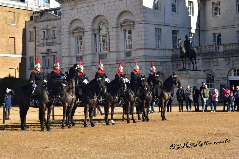 威斯敏斯特 摄于威斯敏斯特地铁站的一个出口,出来是Parliament Street 从地铁站出口处步行至丘吉尔作战室并不远,不过到了门口后,我们被周围的雕像以及景观所吸引,不知不觉来到了皇家骑兵卫队阅兵场,正碰上骑兵仪仗队在为换岗仪式作准备。由于换岗仪式太热门,原本并不在我们的计划中,但居然在此时此地不经意间撞见,可谓之缘分。其实,丘吉尔作战室周边就是圣詹姆士公园的后面,在公园向着这个方向远眺也能看到一二,所以说,伦敦城里的核心区域,其实也不大,很多地标相隔都很近。