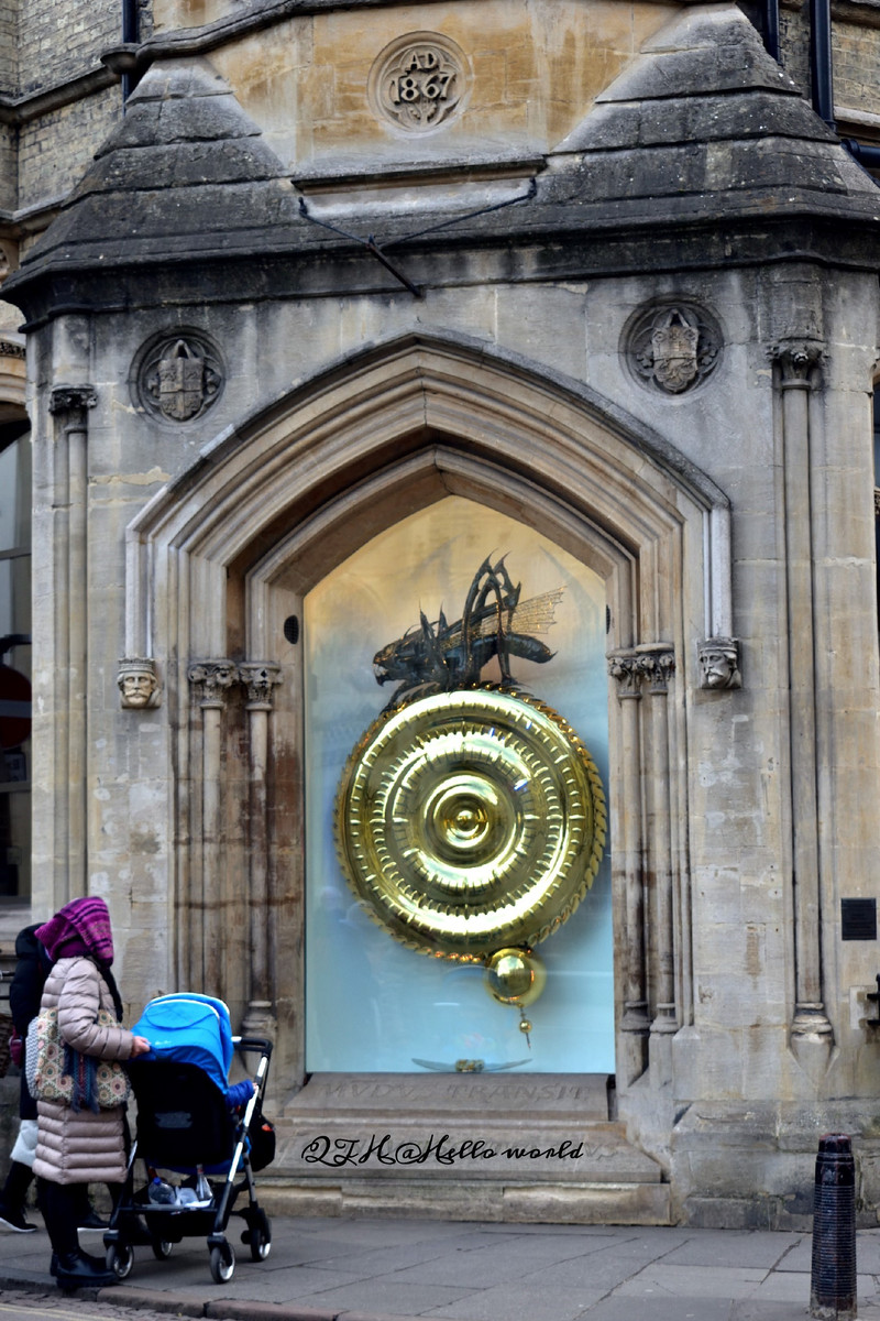 剑桥大学 三一学院由国王亨利八世创立于1546年,无论是学术成就还是经济实力、学院规模,在剑桥大学现在的31个学院中都是名列前茅的,伟大的科学家牛顿,哲学家培根以及包括查尔斯王子在内的多位王室贵族及六位英国首相、多位诺贝尔奖得主都曾在这里学习或工作。照片正中央草坪上的便是那棵大名鼎鼎的苹果树,传说那便是牛顿 “万有引力”定律的来源。 圣体钟在国王学院斜对面,由于在路口,风格有很现代,所以很容易找,不过,作为一面钟,要看懂其表示的时间,确实要费些功夫。个人觉得这个造型实在算不上好看,但很有视觉冲击力是真的。