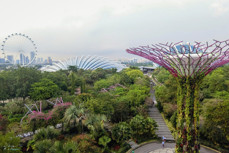 滨海湾花园 Gardens by the bay 新加坡被称为“花园城市”,而最能映衬这个称号的地标建筑,则非滨海湾花园莫属了。 这个闹中取静的花园胜地建在滨海湾之畔,占地面积达101公顷,囊括25万棵珍稀植物,由18棵超级树、2座大型温室、文化遗产花园、植物世界、蜻蜓湖和翠鸟湖等组成,还有一个适合小朋友们玩耍的远东儿童乐园(Far East Organization Children’s Garden)。无论是从空中俯瞰,还是坐游船驶过,滨海之畔这两个宛若巨大贝壳的温室和郁郁葱葱造型奇特的超级树都是令人赞叹的存在,尽显建筑、设计和工程领域的奇观。 置身于这座载誉世界的园艺巨作之中,或在树顶鸟瞰郁郁葱葱的园景,或在温室观赏华丽珍稀的植物,或在湖畔边闲庭信步,或在庭轩间小憩片刻,沉浸在滨海湾的绿色园林之中。