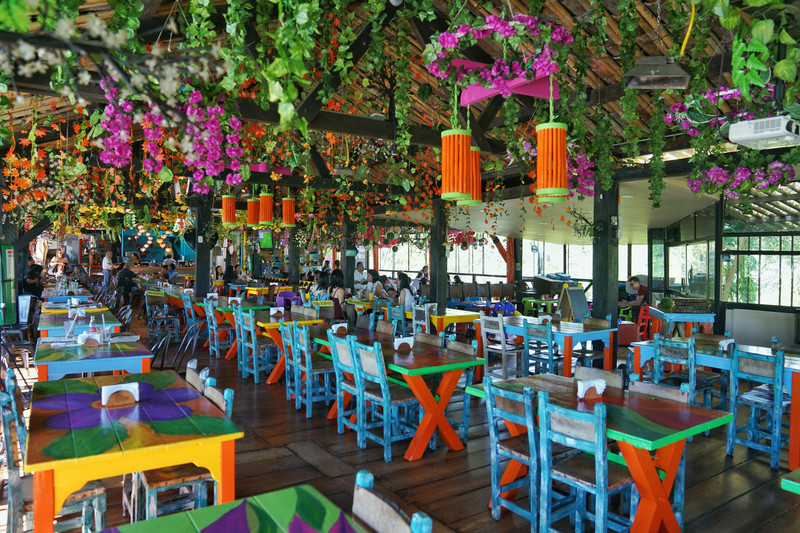 浏览往返之中在咖啡园花去了不少时间,等到了午餐的Restore El Solar餐厅,已经快下午三点了,向导为每个人点了咖啡区特色美食巴伊萨拼盘Bandeja Paisa,红豆、香肠、鳄梨、炸猪肉、炸香蕉、玉米饼和米饭堆满了满满一大盘,虽然味道是还不错,但量实在太大了,建议两个人一份就够了哈,前菜小食香蕉片还有特色的椰子柠檬汁倒是可以人手一份。