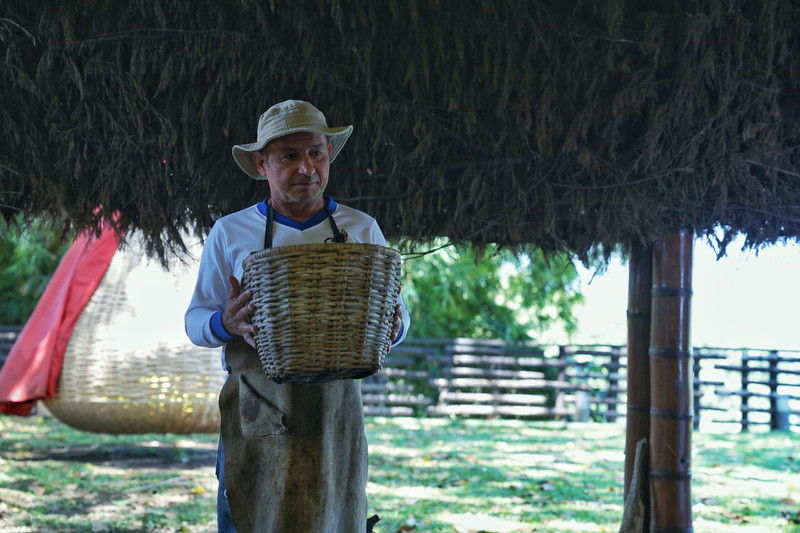 还会教大家如何亲手制作采摘咖啡的竹篓,虽然我们暂时还只能制作一个迷你版哈,但依然可以背上它开始咖啡园徒步啦。一路上听向导讲解咖啡从一颗幼苗到成为杯中醇香的整个过程,亲手摘下几颗成熟的果实,还顺便品尝了园里的桔子和香蕉,也很美味哦。