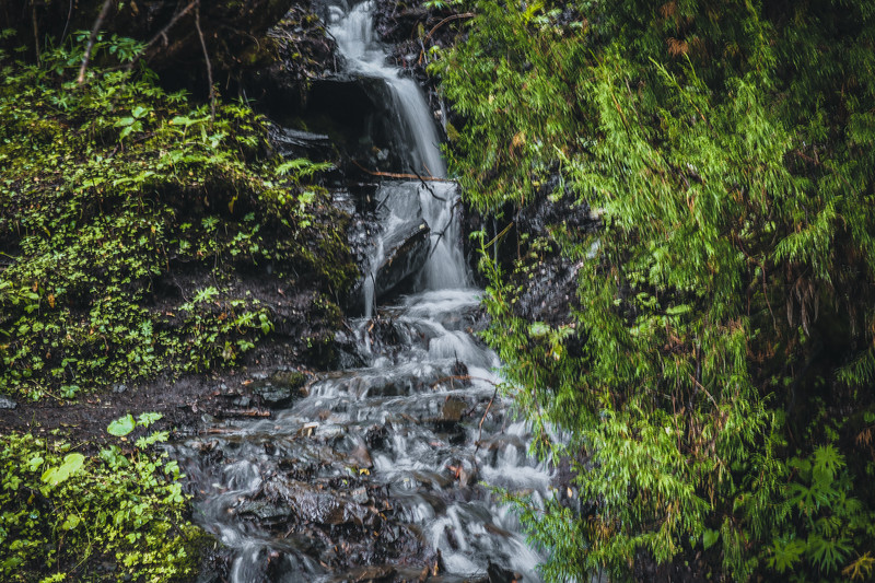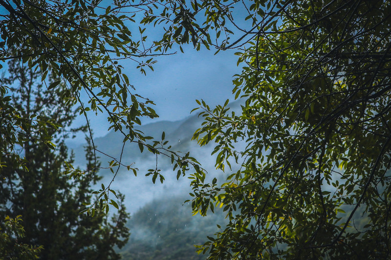 这是多美的一个清晨,全身只有一种感觉,每一个毛孔都浸透着喜悦。我与这里的山水融为一体,如湖水一样,心情宁静只有一丝涟漪,而没有激起波涛。一个人带着未知的心情旅行,应该算是一种美妙的孤独感,当站在山顶的那一刻,什么都不会记起,又什么都不会忘记,所有的一切自然而然地发生着,持续着。你该遇见的终究会遇见的,你该得到的终究会得到,没有遗憾的错过,只有迟到的相逢。 第四天:雨中漫步仙境长坪沟 出小金县城,一路行驶在群山环抱中,窗外的空气清新湿润,青草与树木的芳香沁入心田。路过的村庄不多,偶尔会看到几个村民,放眼望去,重岩叠嶂,绵绵数十里。不知不觉的飘起来小雨,雨滴淅淅沥沥地打在玻璃窗上,而后汇合在被风吹落在了身后,掺杂着我的一些思绪在里面。