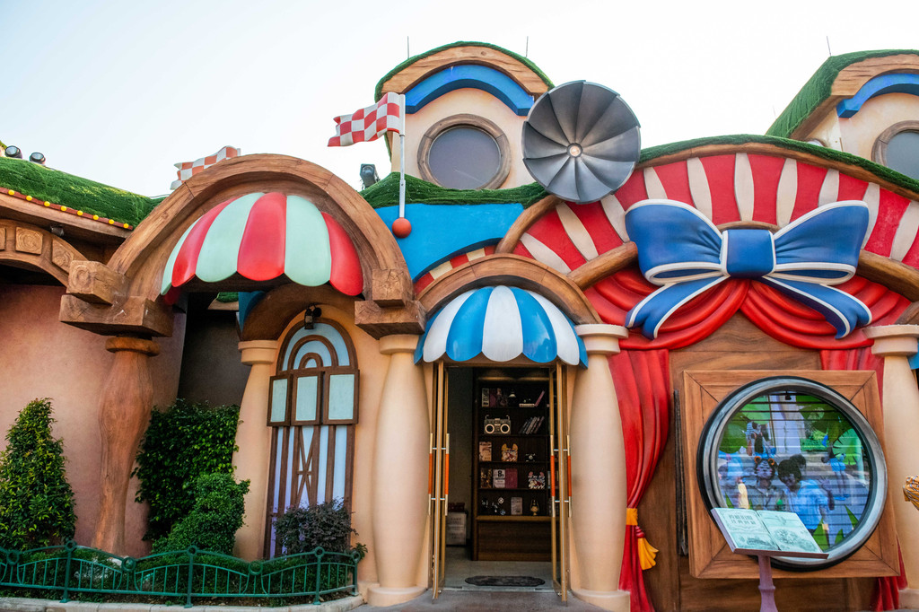 在这样绚丽多彩的海洋王国里游玩,除了拍照留念,若是能带走一两件王国内的特色物品,则更加让人乐不思蜀、流连忘返。而在无所不有的海洋王国内,还真有一个分区能够满足游客们的各种购物消费需求,那就是“英雄岛”分区。整个“英雄岛”区域最具特色的地方一定是那汇聚了所有与王国主题相关的店铺集市街道。 提供特色动物式化妆服务的“美容院”、出售各种新奇小玩意儿的“杂货铺”、能够投喂海鸟、购买毛绒公仔及周边纪念物品的“露天剧场商场”、还有可以体验铸铁工艺、参与相关互动游戏的“武器铺”。一座又一座五彩缤纷、童话感满满的特色商铺林立在街道两旁,穿行其间仿若来到了梦幻世界中的集市,总给人一种能淘到宝物的感觉,让人禁不住要“买买买”! 【买:英雄岛-集市尽情买买买】