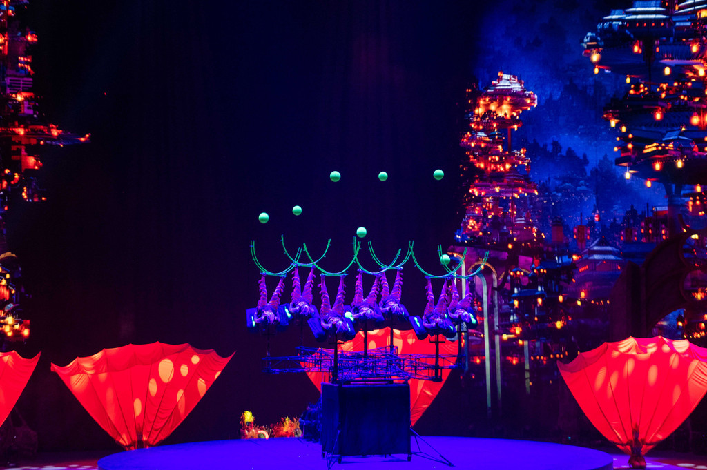 龙秀是来珠海必须观赏的表演,演出在面积达7.1万平方米的长隆剧场表演,这个全新国际演艺中心的剧场可以容纳近6700民观众,通过水陆空马全方面的展现了珠海渔女的传奇故事,融合了杂技、舞蹈、滑稽表演、魔术、极限运动、声乐、花样游泳等多种艺术门类,汇聚了来自22个国家、30多支团队、300多名世界各地的优秀马戏艺术家共同演绎,整个表演时常约为2个小时左右,现场观看所带来的震撼效果远比照片带来的感受要深得多! 【逛:海洋大街-海豚馆】 来到海洋王国进门之后一个极具童话特色的入口赫然而立,这便是海洋王国的第一处景观――海洋大街。入口处按照实物高度还原打造的橙黄色珊瑚礁墙,此起彼伏从两边绵延而去。礁墙之上是各色各异的珊瑚植物、长短不一的绿色海草、可爱生动的小鱼群,而顶部则是一只硕大的蓝色魔鬼鱼,,舞动着那如巨毯一般的胸鳍凌驾于两旁的珊瑚礁上,有着遮天盖日的气势,令人惊奇无比,由此架构出了“海洋大街”的主体。