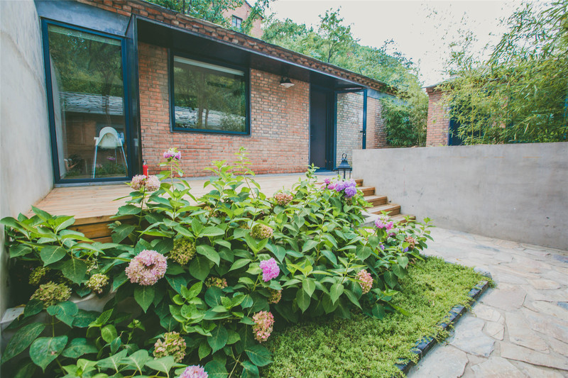 室外庭院里种植了一排绣球花,在一片绿叶上紫的粉的煞是好看。花基旁边是木质楼梯通往房子前有一片空间,我和闺蜜都觉得应该在这里摆放几张桌椅,再冲泡一壶茶,坐在椅子上发发呆,享受悠然静谧的乡野时光。