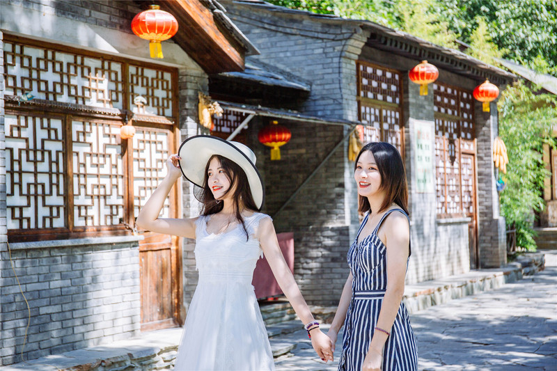 店铺房屋依山傍水,石砖青瓦,一转一石都带有浓厚的北京民舍味道。溪水涮涮流过铺满鹅卵石的水道,闺蜜突然拨起水花突然向我泼过来,完全猝不及防,我也不甘示弱的回击,清凉的溪水浸润下感觉回到小时候无忧无虑的日子。