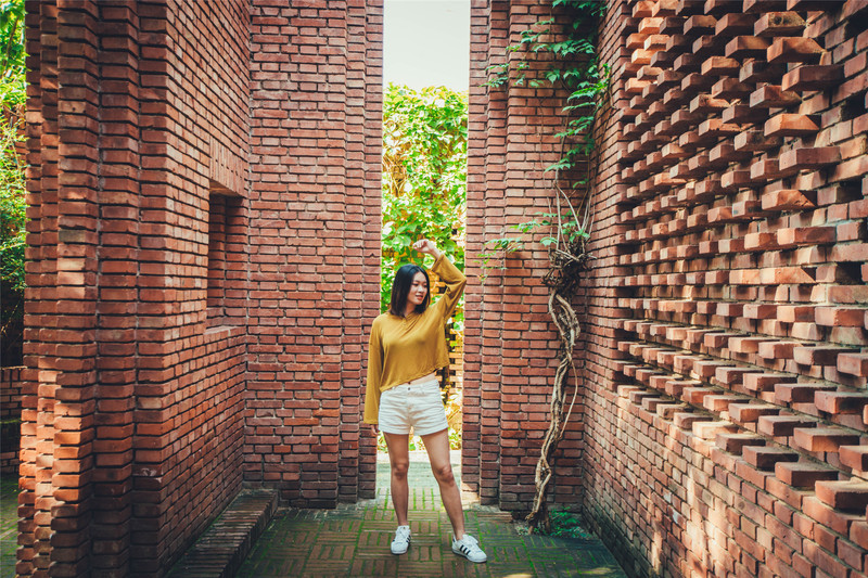 庭院内青砖的园林处处都是弧形的设计,红砖的建筑全都是棱角分明的直线。青砖的冷色让人感觉到傲气的阴柔,而红砖的暖色又是充满阳刚的正气。