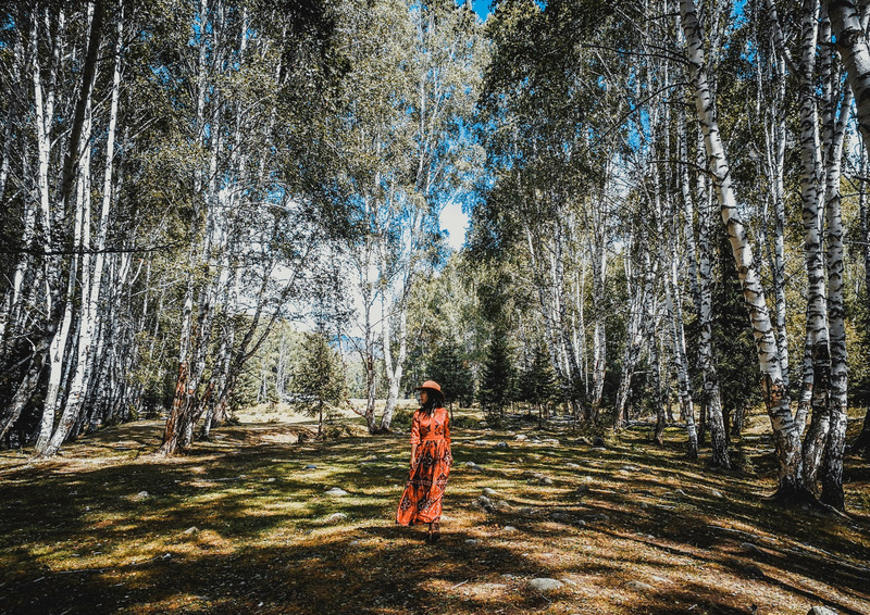 差不多十点半,我们在喀纳斯山脚集合,坐上旅行团的大巴,出发去禾木风景区!禾木和喀纳斯离得不远,大概一两个小时就到了~~
