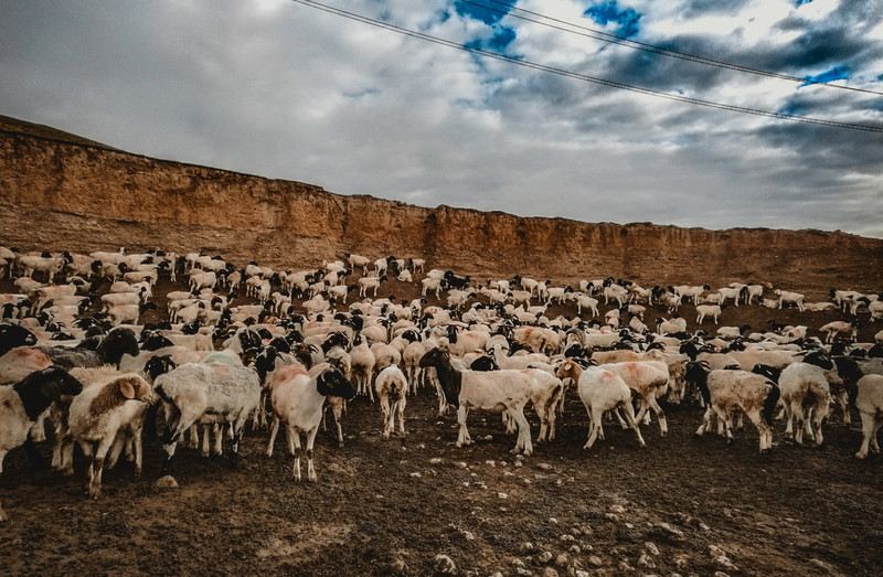 满山遍野的黑头羊~~黑头羊的身上被涂了不同颜色的染料,以便区分主人~~