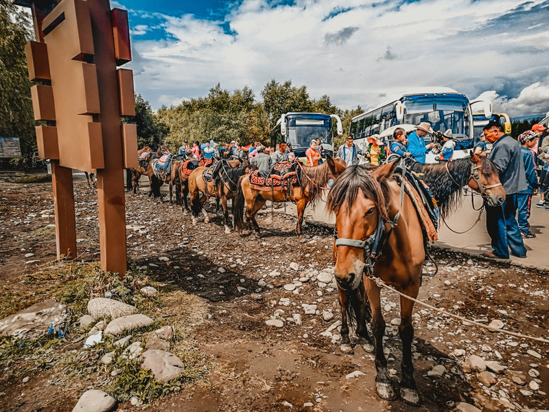 和喀纳斯景区差不多,那拉提也是到了景区换乘景区大巴~换乘大巴的地方有好多马,大家也可以骑马进景区~