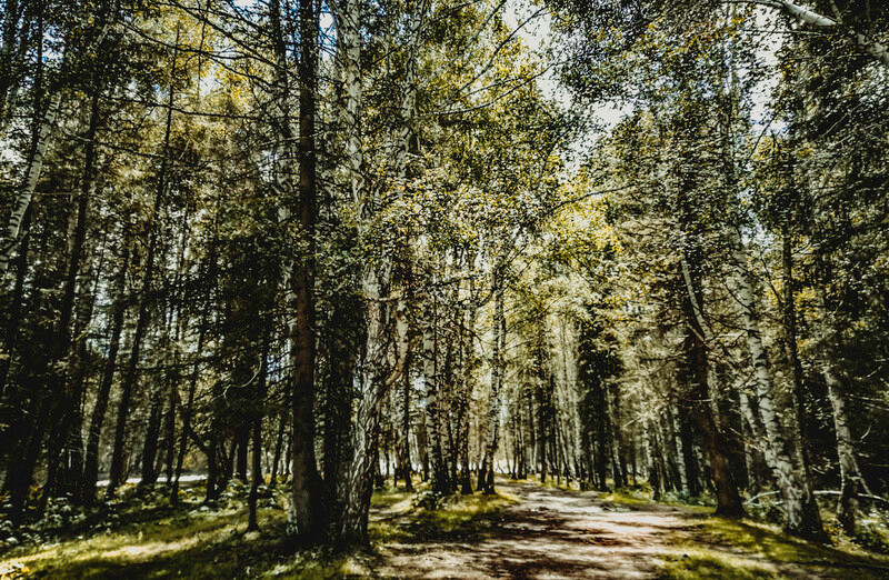 赛里木湖被群山围绕,步道可以通向森林深处~