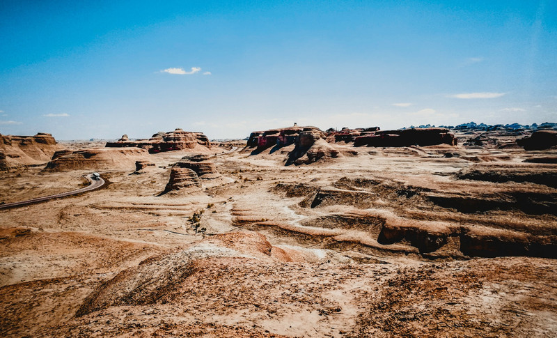 今天大概是车程最少的一天,也是到酒店最早的一天~ 看了两天绿色,明天我们就要换换口味,去欣赏新疆的黄色了~期待明天的行程!晚安~ 【第四天: 乌尔善魔鬼城】 第四天的行程,我们要从阿勒泰地区出发去奎屯,途径乌尔善魔鬼城。魔鬼城是我们今天唯一的景点。最近魔鬼城因为鬼吹灯啊,盗墓笔记啊,真的是越来越有名了~这个传说中进去就走不出来的地方,真是充满了异域的神秘~ 从郁郁葱葱的阿勒泰地区出发,沿途的风光又变成了无边际的戈壁。