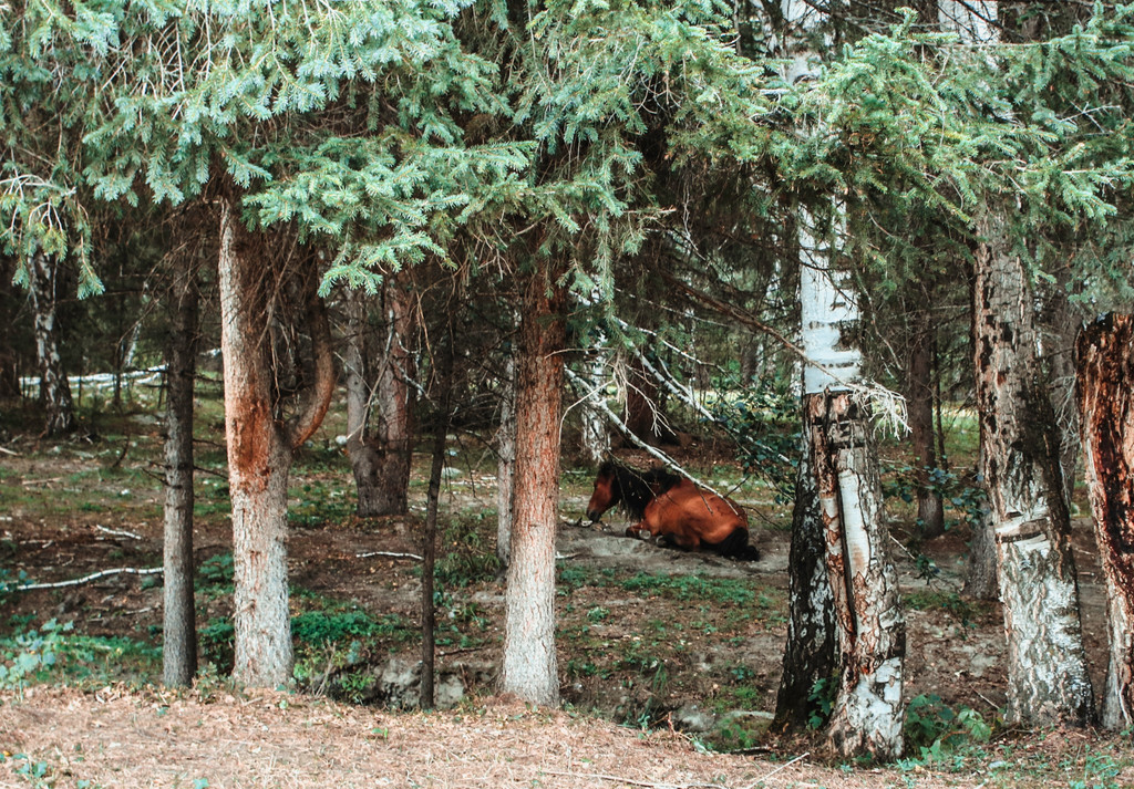 新疆的马和我们平时见到的马很不一样,这里的马的皮特别有光泽,在阳光下真的是油光发亮的!好想去摸摸它们!