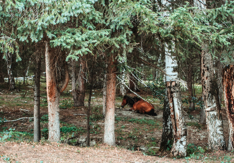 一匹午休的小马~在新疆小动物真是随处可见~