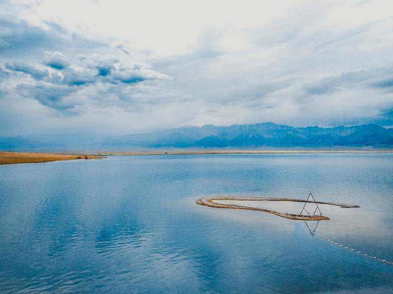 因为云的影子,湖水呈现出深浅不一的蓝色~