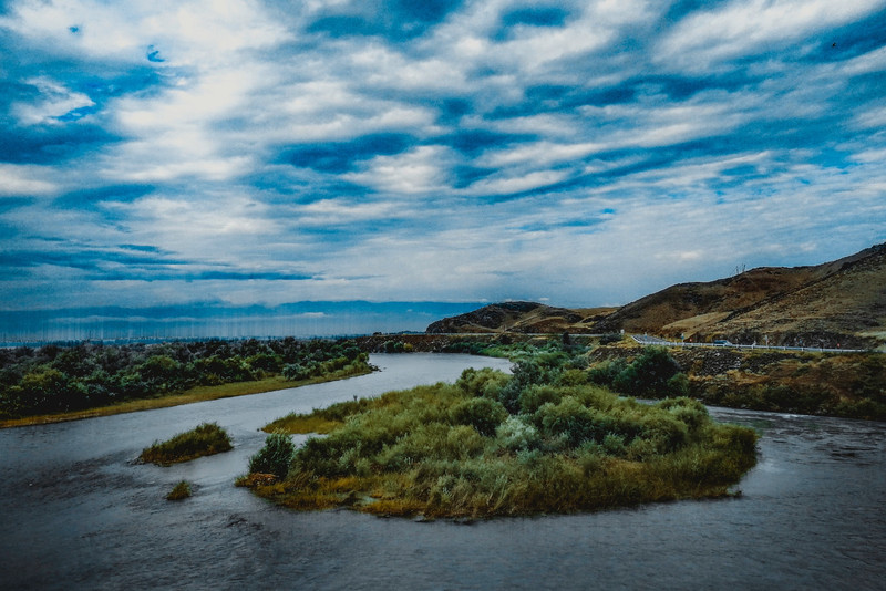 下山的路上,天空越来越晴!八点半左右正是新疆的黄昏时分~金黄金黄的阳光撒向大地,整片山丘麦田都充满了生命力!