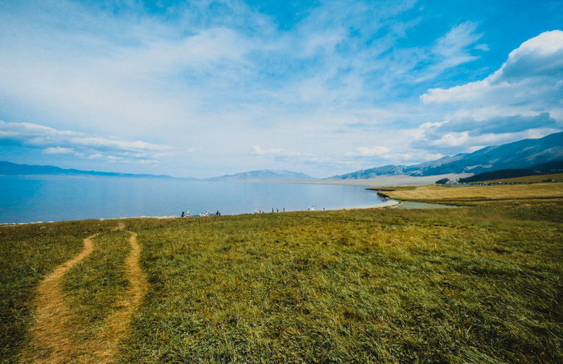 栈道跨过草原通向湖边~