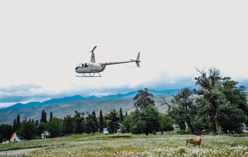 河谷草原还有乘坐直升机俯瞰草原的项目,我们没有参加~爬上一个小山坡可以看到好近好近的直升机!!