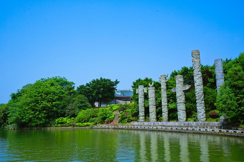 湖中的木龙塔是以上海宋代的龙华塔为蓝本建造的, 在山水的环绕下,塔更为别致美观, 围绕着湖走上一圈,无论从哪个角度欣赏,都有不同的景致。