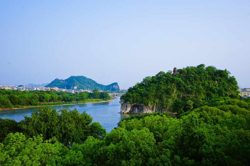 象山是桂林的城徽,不看象山枉来桂林, 但象山景区的门票价格直接打消了想进去游览的心情。 而在这个独特的视角下看着象鼻山和日月双塔, 不用购买门票,不用去景点人挤人,真的是高性价比的选择。