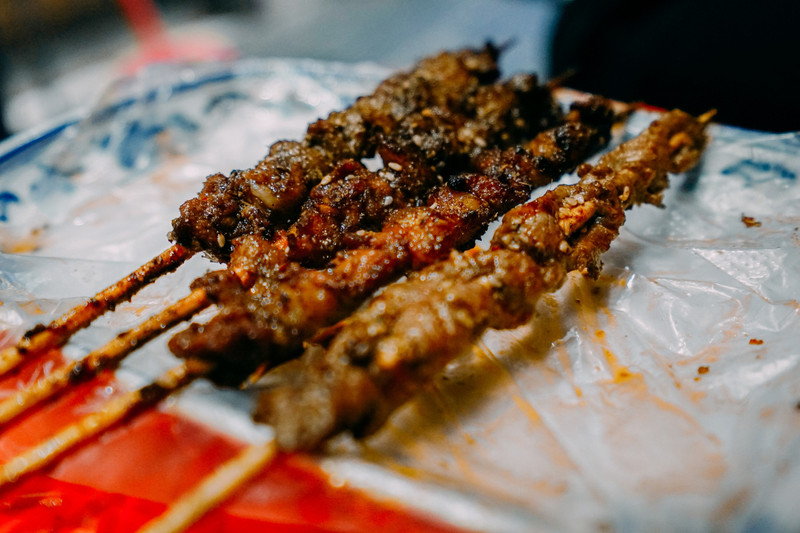 回酒店的途中偶遇十三移, 知道是桂林市内烧烤摊老字号, 忍不住来了几串解解馋。 是用炭火烤的,所以等待时间有点长。