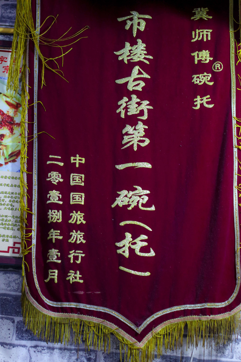 有一家冀师傅碗托,号称市楼古街第一碗托,店内的装修具有平遥的年代感。