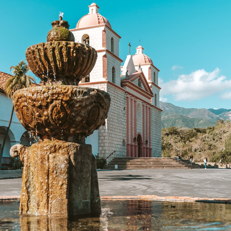 教堂与法院 ?Santa Barbara old mission 是加州的十大教堂之一,素有“传教站女王”之称,它矗立在小镇高处,前面有一大片绿荫草地,令人产生强烈的野餐欲望。教堂采用粉色勾边,少女心爆棚,和周围绿植鲜花相互辉映,特别适合拍摄糖果色的清新大片。该教堂曾经作为加利福尼亚教区的总堂,两座对称的钟楼,标志着这座教堂有别于其它教堂的崇高地位。