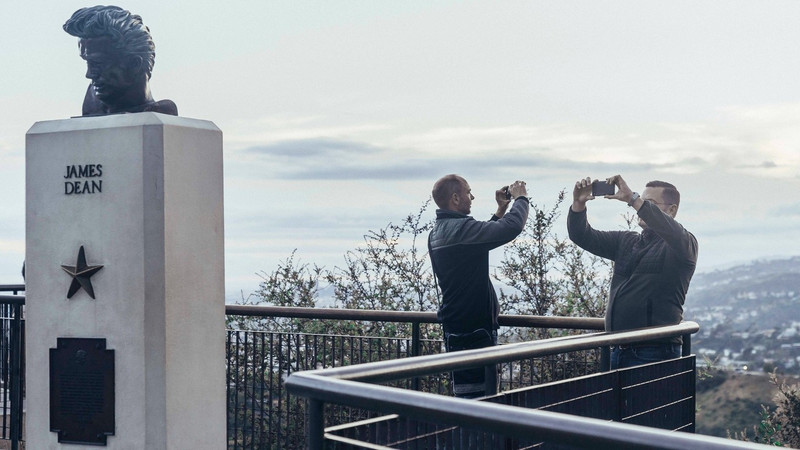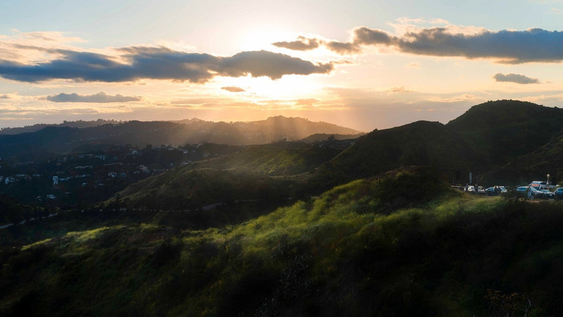 【HOLLYWOOD】观景台 其实 好莱坞 字母的观景点不少,当地人长期在山头转悠,开发了不少好地方。前人种树,后人乘凉,我们也顺势找了一个点,比起格里菲斯天文台路线的拥挤,这里倒是一份清静,观景人很少。自驾在谷歌地图搜索“Deronda Drive”,一直开往山顶,开到这个Tiffany蓝的大铁门就到了。运气好路边还能将车临停一会。