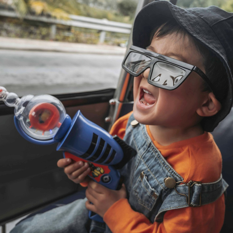 ?我们给 泰山 买帽子, 泰山 却想要的是玩偶熊,抱着这个铁架子一直不愿意走。 “ 泰山 ,后面还有很多好玩的玩具等着你,你不想看看吗?” “不要,后面就没有熊了。” “那你买了熊,后面看到更好玩的,就不能买了,不要后悔哟。” 泰山 思考了一会儿,觉得我好像说的有那么点道理,虽然一脸闷闷不乐,但也放弃了偏执。直到在玩具店买到了自己最喜欢的小黄人枪才摆脱了毛绒熊的阴影。我想每位父母都会经历相似的境遇,不知道大家如何解决这些难题?