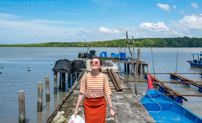 ▼我们的船行驶在红树林茂密生长的河道里,天特别蓝,水面之上就是丛林。 除了村民们的聚居地,在红树林里特别的位置也会有简陋的房屋,有的是住户,有的是临时休息地,别说,还真的有一种“误入金三角”的感觉! ▼大清早起来就呆滞的某人
