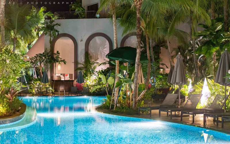▼游泳池在大厅外,开放时间07:00-10:30,干净人少又漂亮,所以我每晚都去游一个小时,有一天早上还去晨泳了一下。穿着浴袍下楼就可以了,泳池旁有工作亭,专门提供毛巾这些。