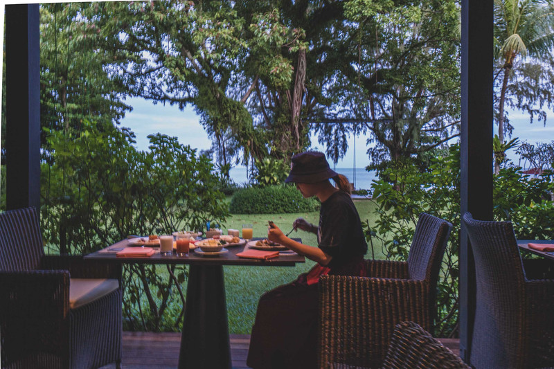 ▼另一个超喜欢的点是餐厅,餐厅在G楼Cinnamon,从06:30开始供应,真的Super-Super大,而且有室内和室外两部分,室外直接连着花园,花园连着海边沙滩,所以可以一边看海景一边吃早餐,偶尔你还会看到沙滩上的马走来走去。外面的草坪上还有一个巨型秋千。